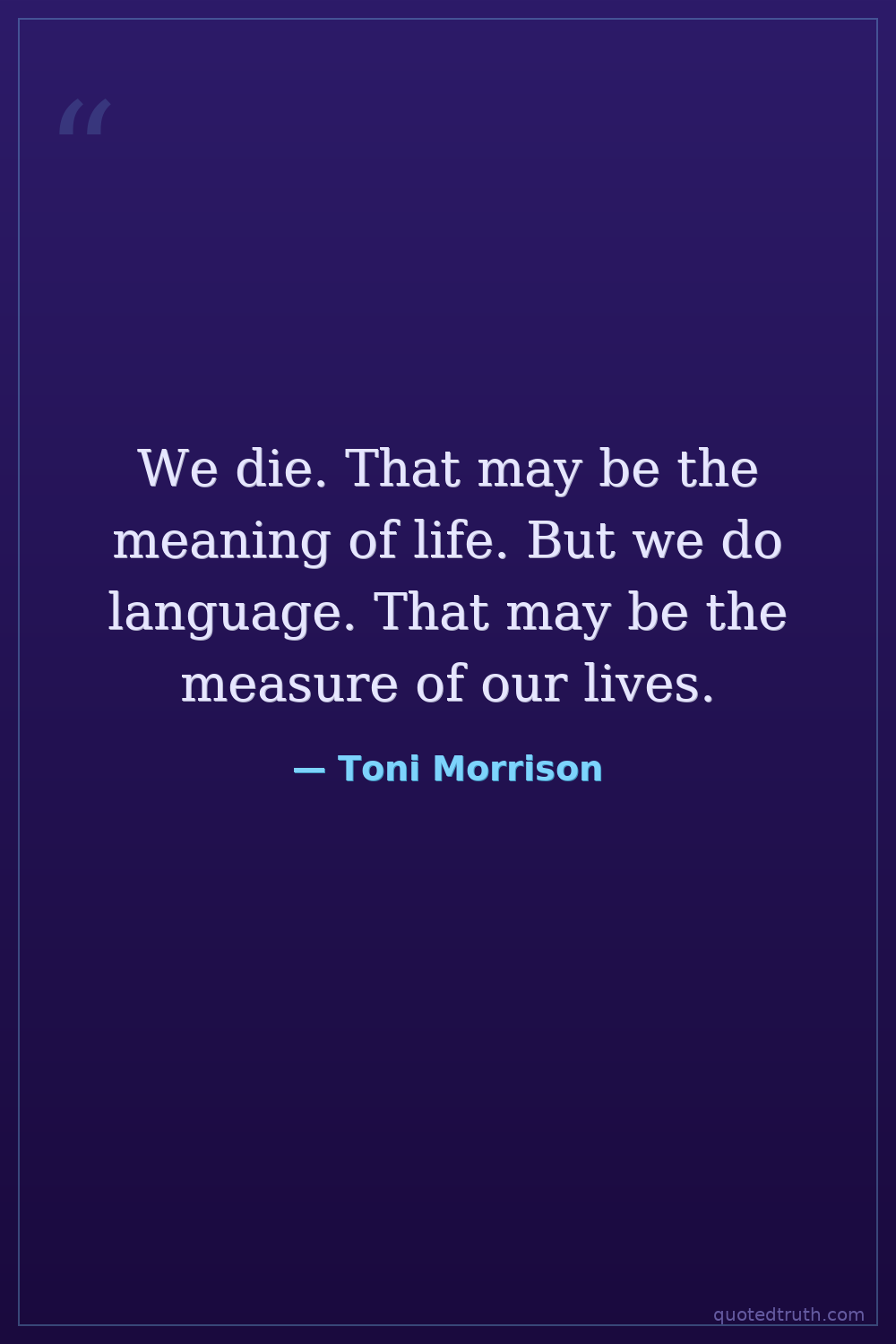We die. That may be the meaning of life. But we do language. That may be the measure of our lives.