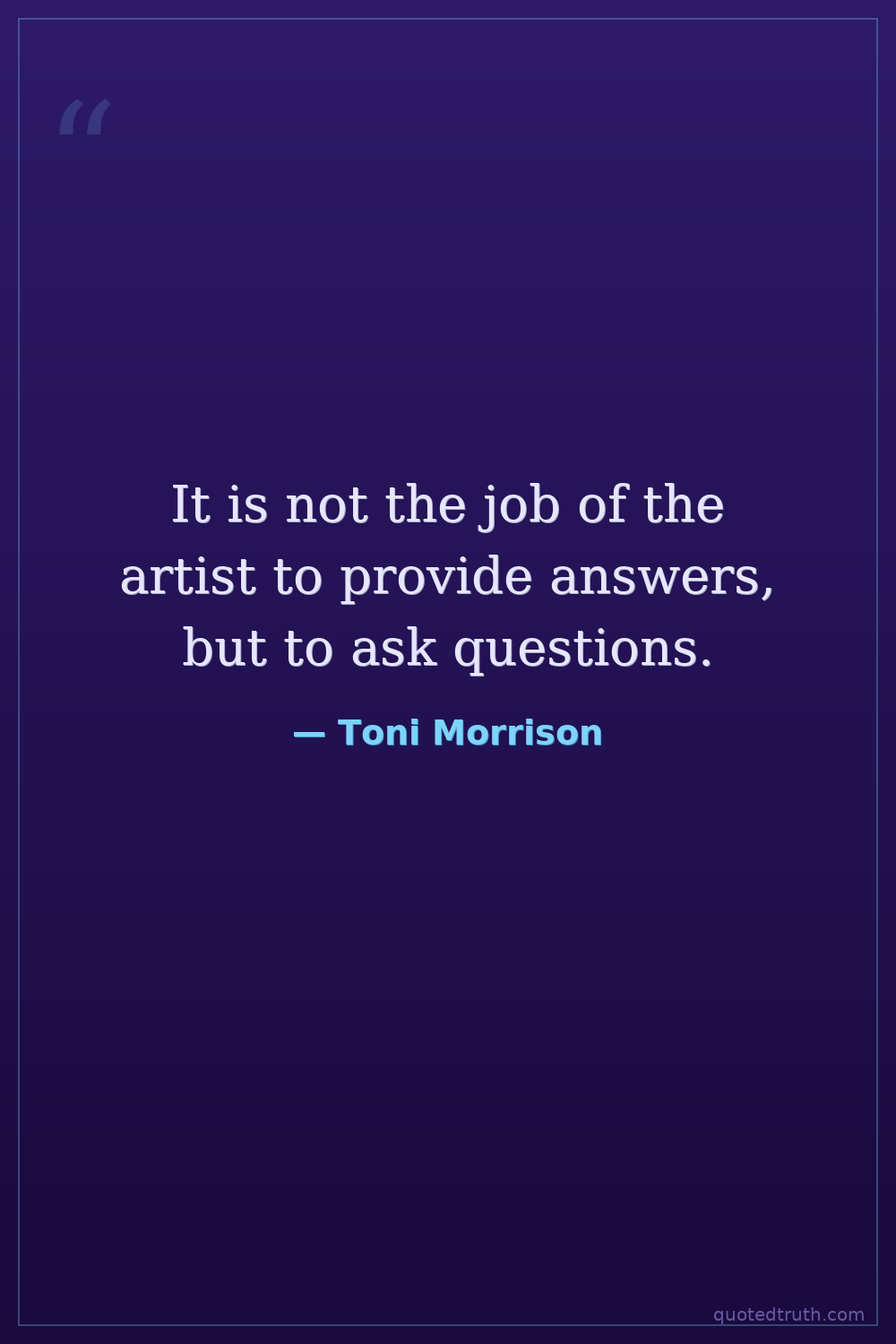 It is not the job of the artist to provide answers, but to ask questions.