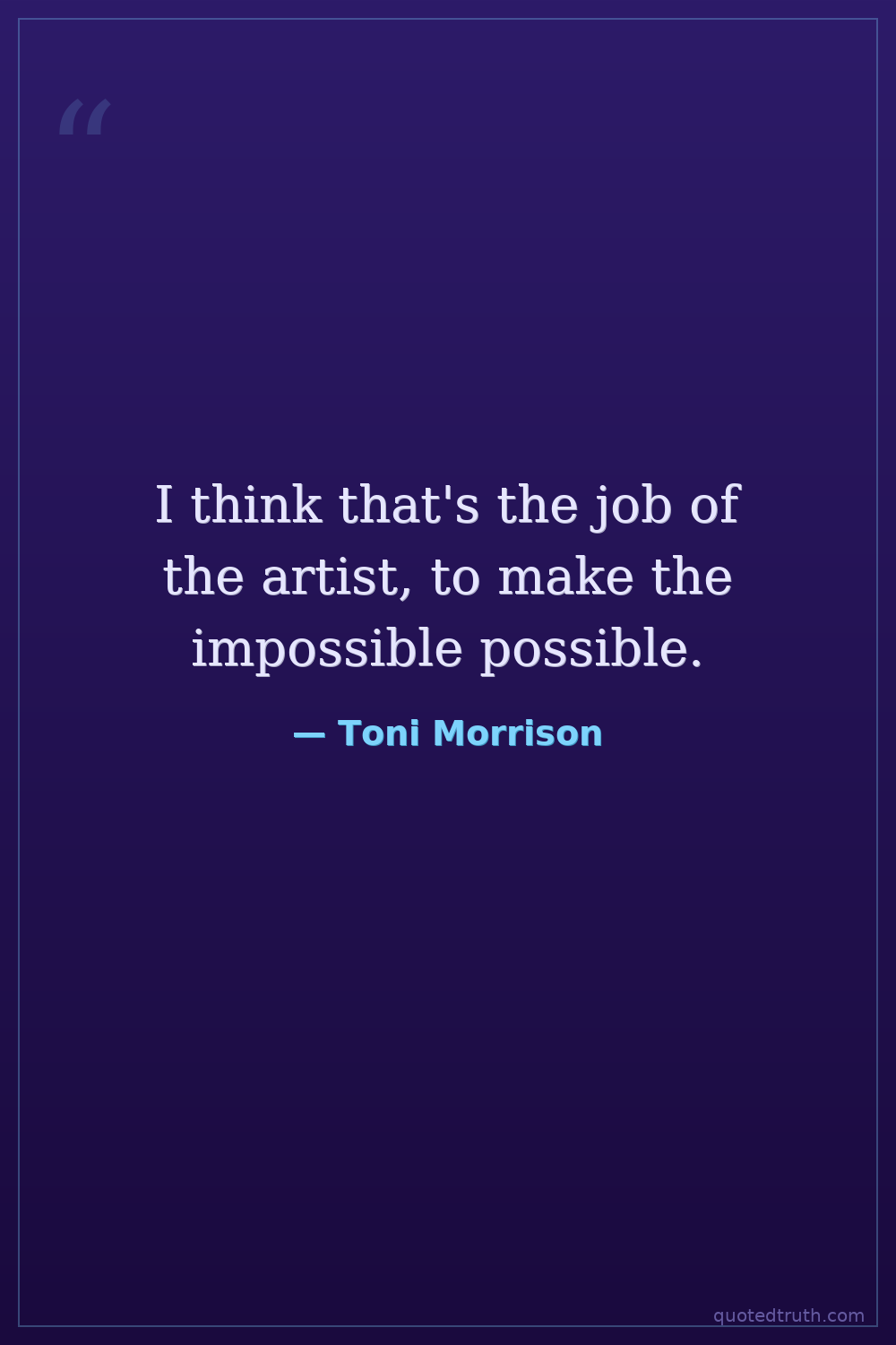 I think that's the job of the artist, to make the impossible possible.