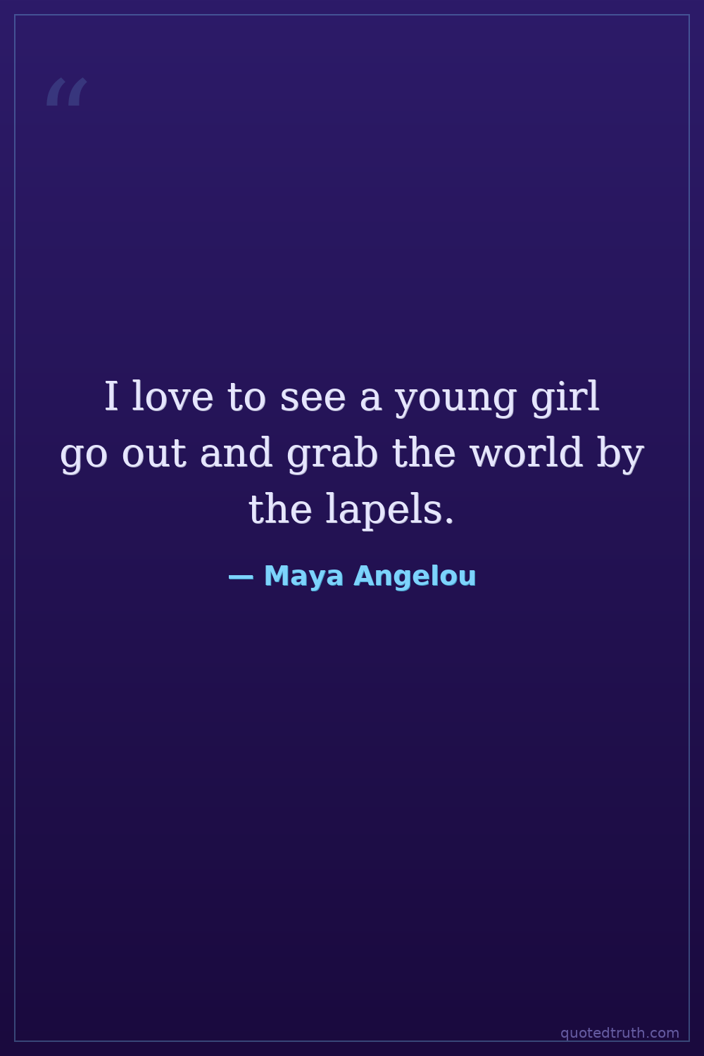 I love to see a young girl go out and grab the world by the lapels.