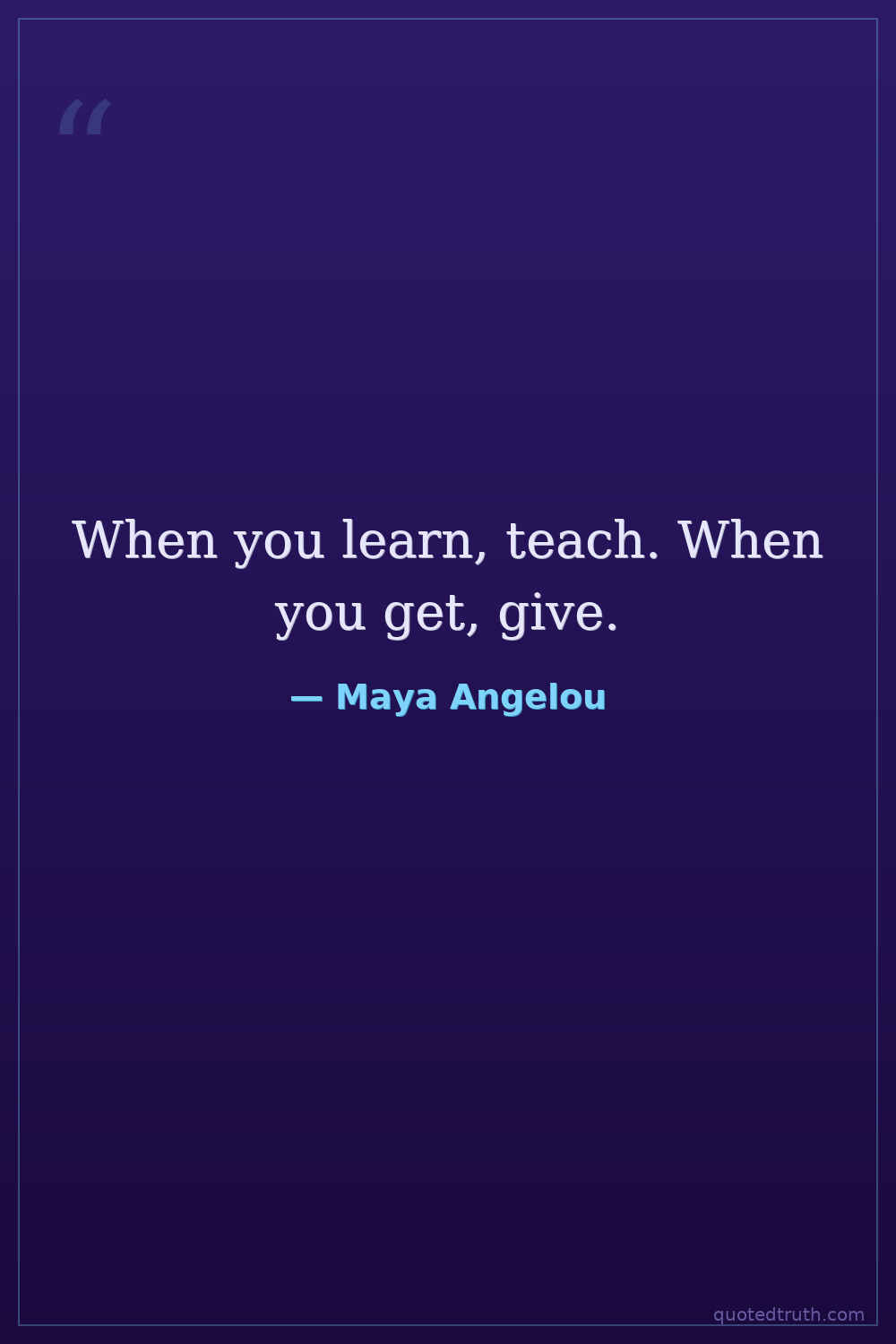 When you learn, teach. When you get, give.