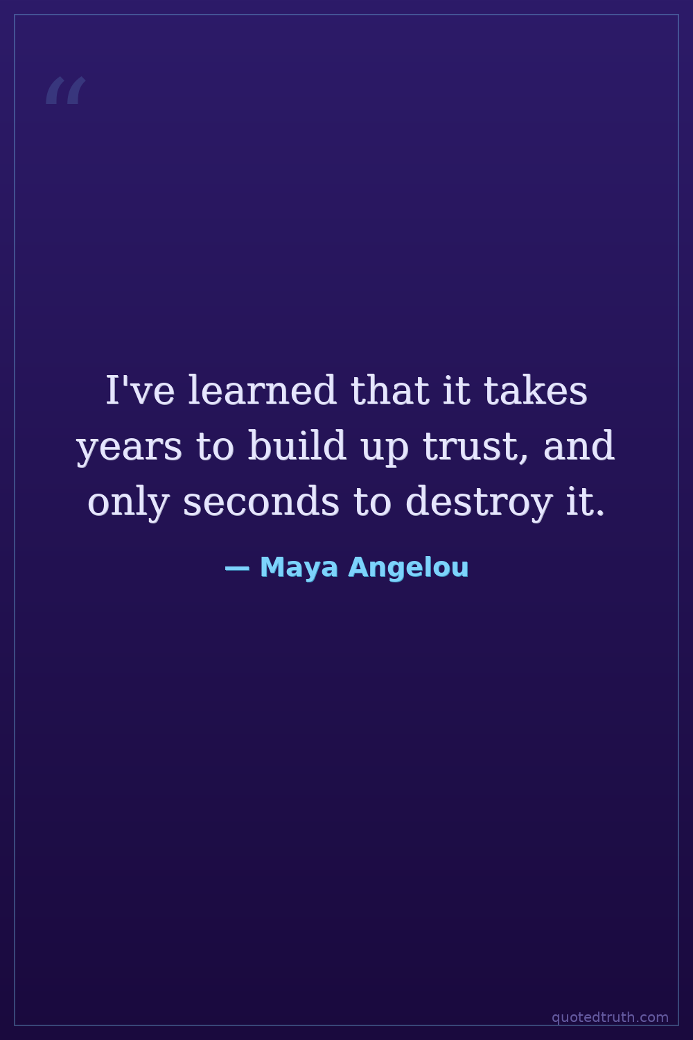 I've learned that it takes years to build up trust, and only seconds to destroy it.