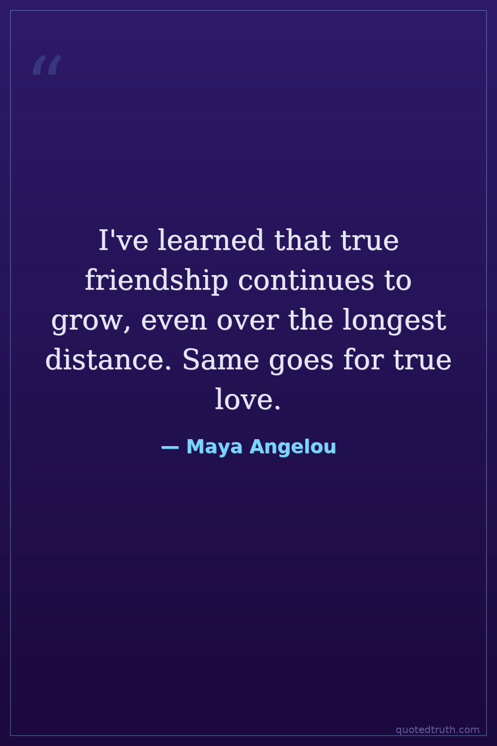 I've learned that true friendship continues to grow, even over the longest distance. Same goes for true love.
