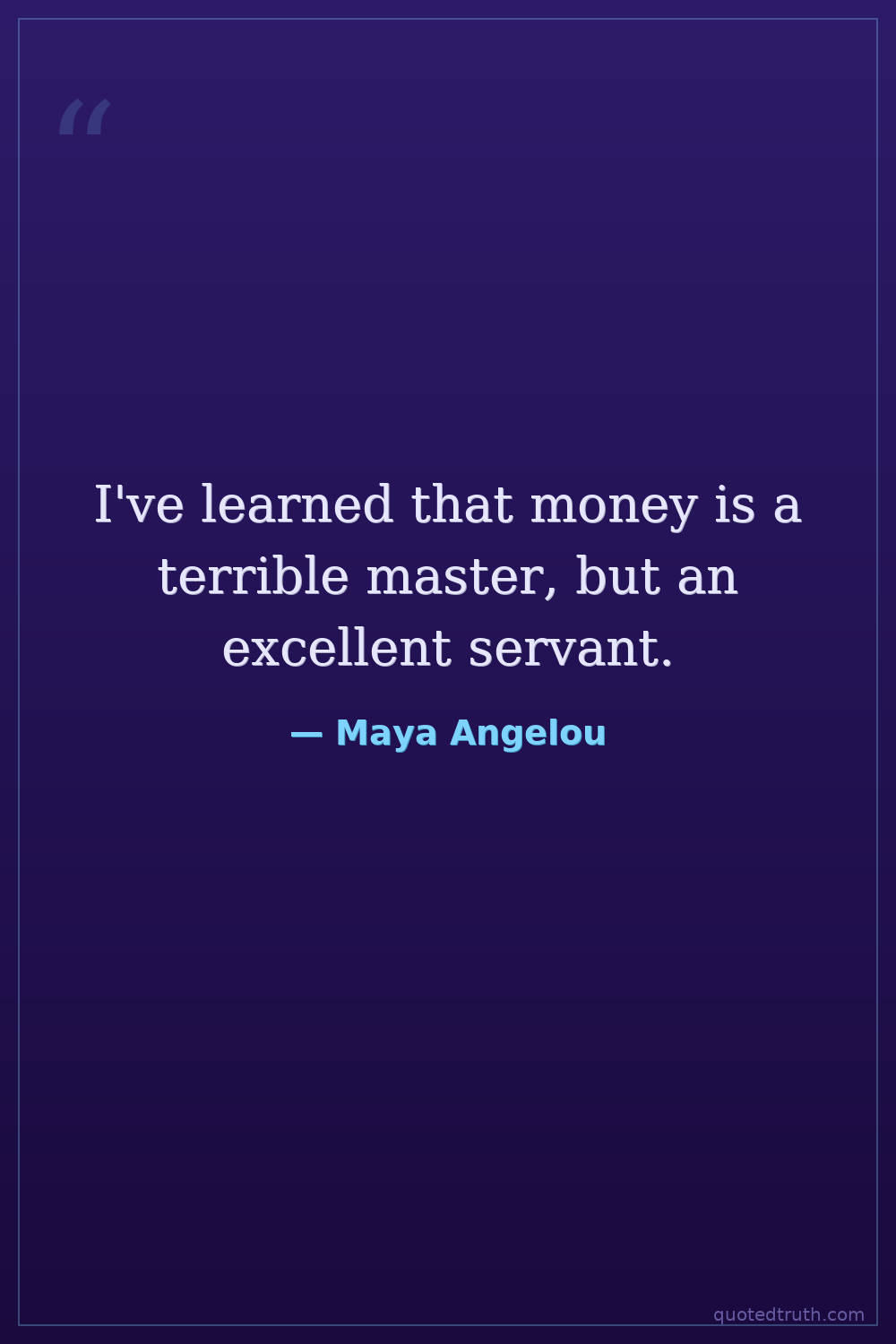 I've learned that money is a terrible master, but an excellent servant.