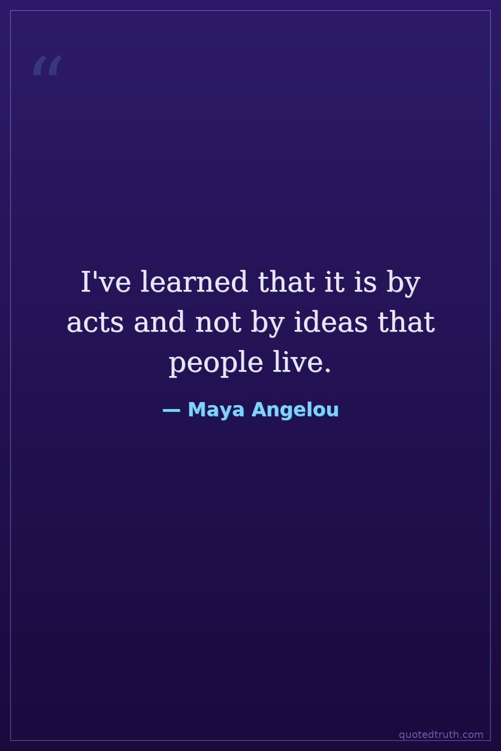 I've learned that it is by acts and not by ideas that people live.