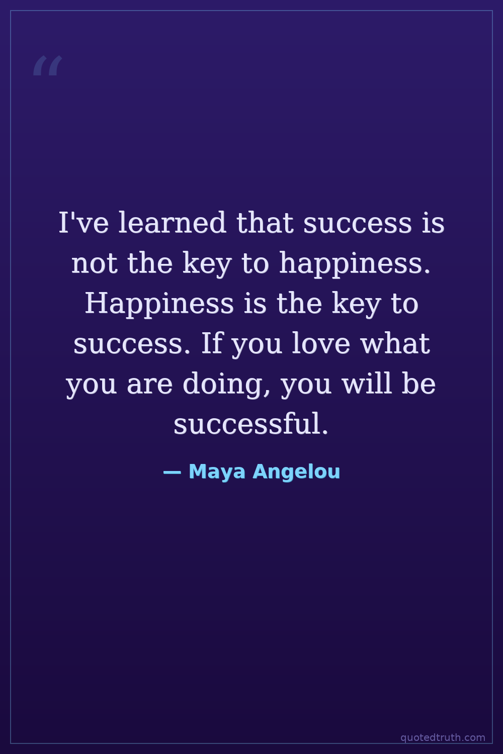 I've learned that success is not the key to happiness. Happiness is the key to success. If you love what you are doing, you will be successful.