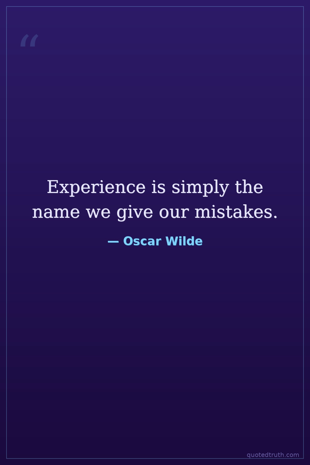 Experience is simply the name we give our mistakes.