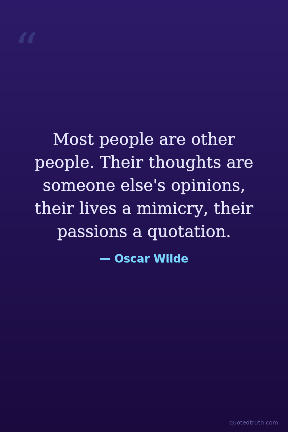 Most people are other people. Their thoughts are someone else's opinions, their lives a mimicry, their passions a quotation.