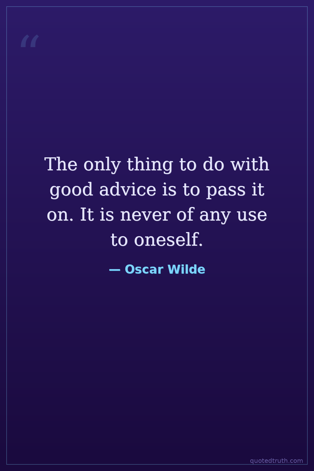 The only thing to do with good advice is to pass it on. It is never of any use to oneself.