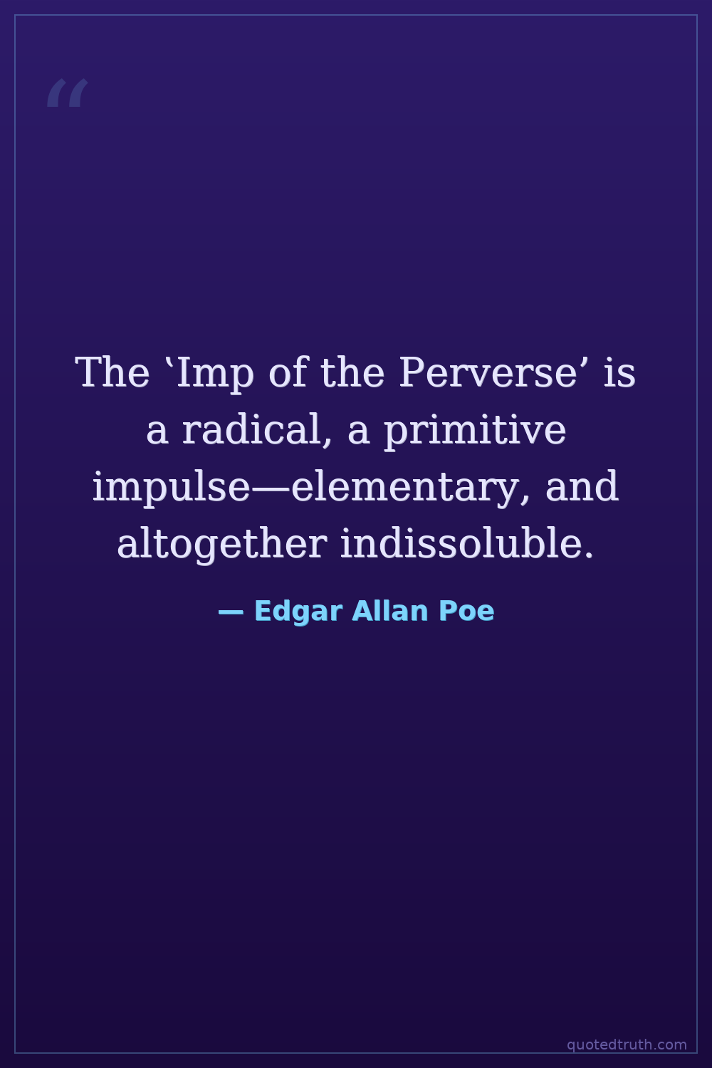 The ‛Imp of the Perverse’ is a radical, a primitive impulse—elementary, and altogether indissoluble.
