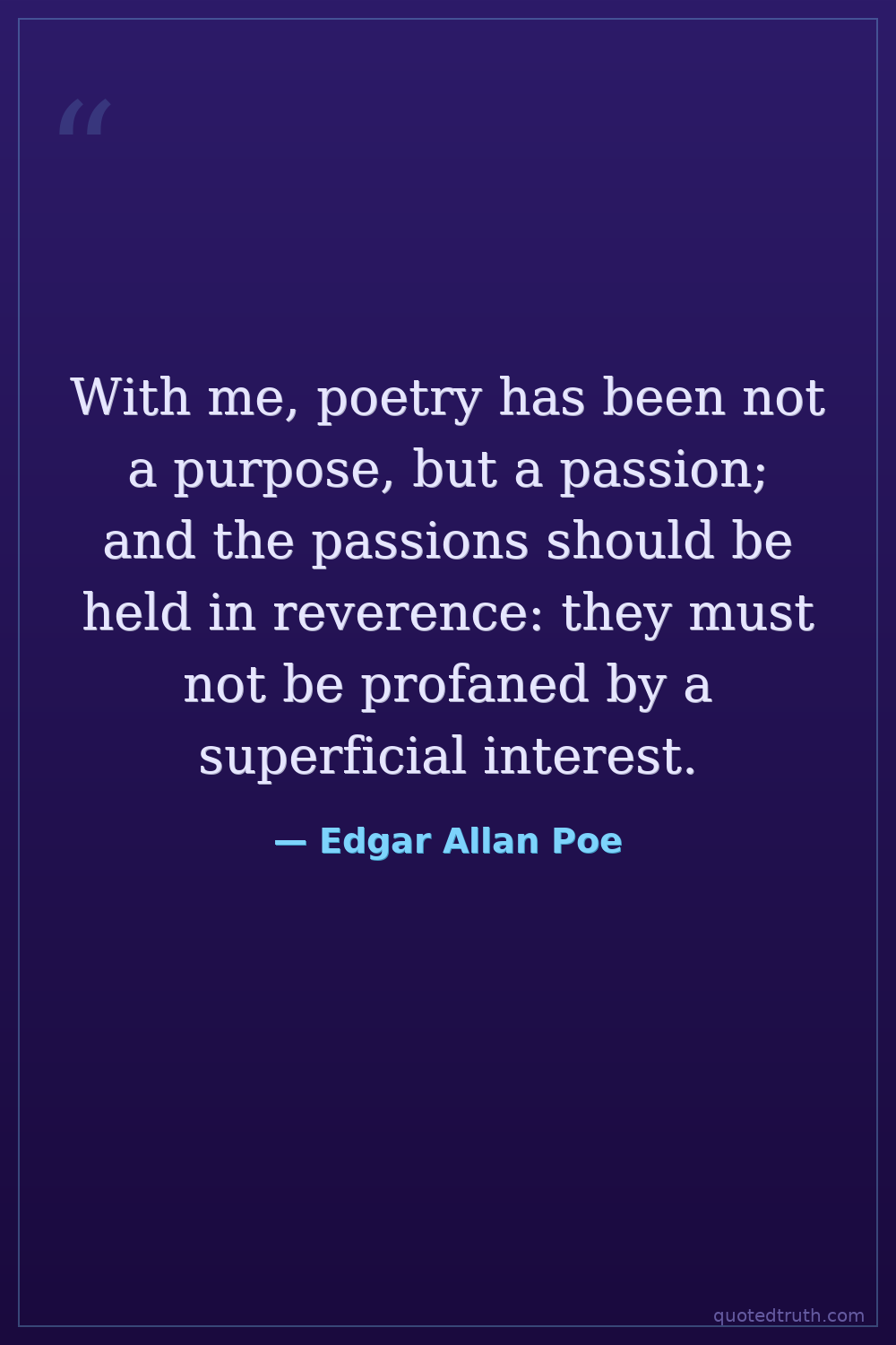 With me, poetry has been not a purpose, but a passion; and the passions should be held in reverence: they must not be profaned by a superficial interest.