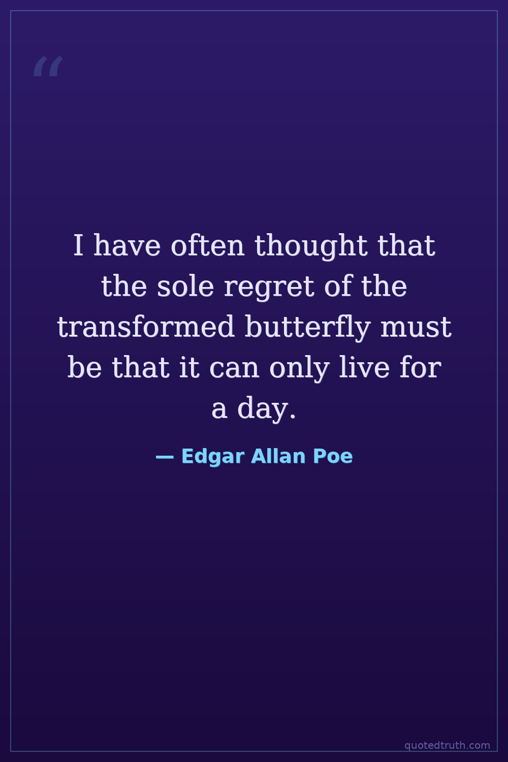 I have often thought that the sole regret of the transformed butterfly must be that it can only live for a day.