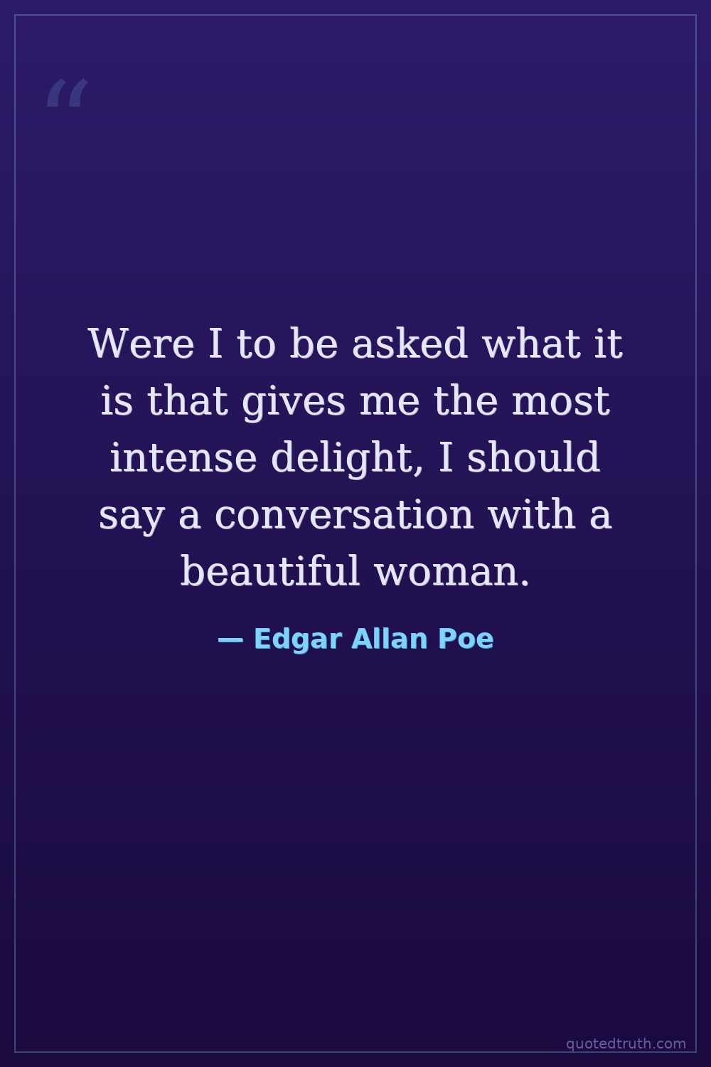 Were I to be asked what it is that gives me the most intense delight, I should say a conversation with a beautiful woman.
