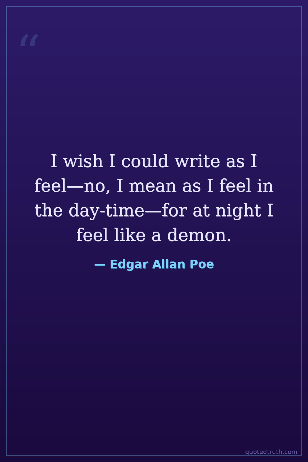 I wish I could write as I feel—no, I mean as I feel in the day-time—for at night I feel like a demon.