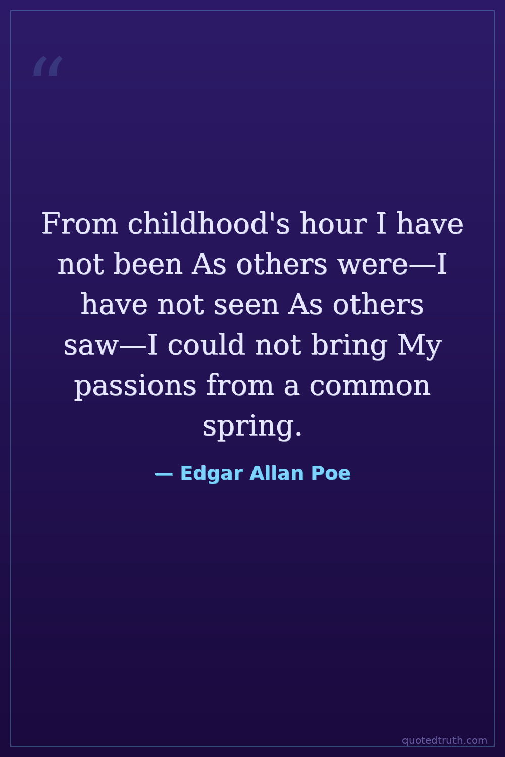 From childhood's hour I have not been As others were—I have not seen As others saw—I could not bring My passions from a common spring.