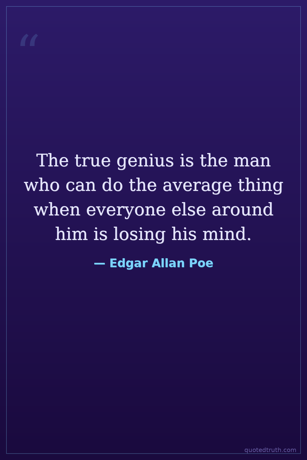 The true genius is the man who can do the average thing when everyone else around him is losing his mind.