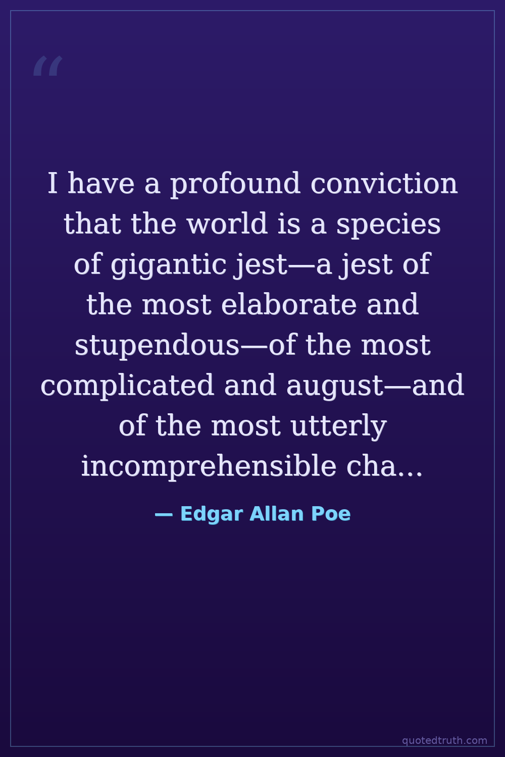 I have a profound conviction that the world is a species of gigantic jest—a jest of the most elaborate and stupendous—of the most complicated and august—and of the most utterly incomprehensible character.