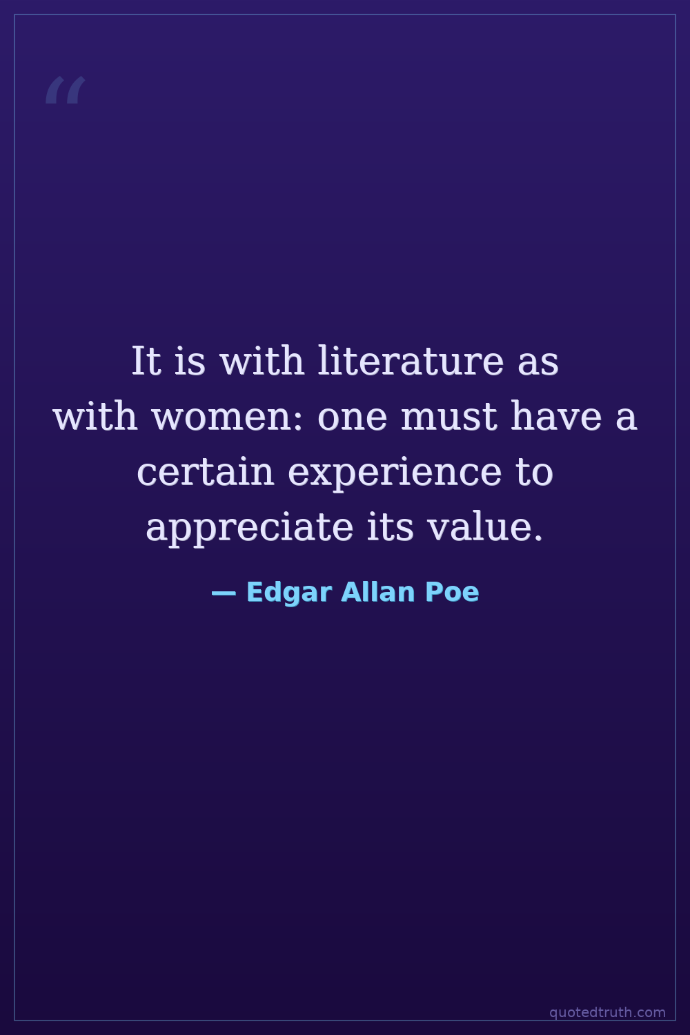 It is with literature as with women: one must have a certain experience to appreciate its value.