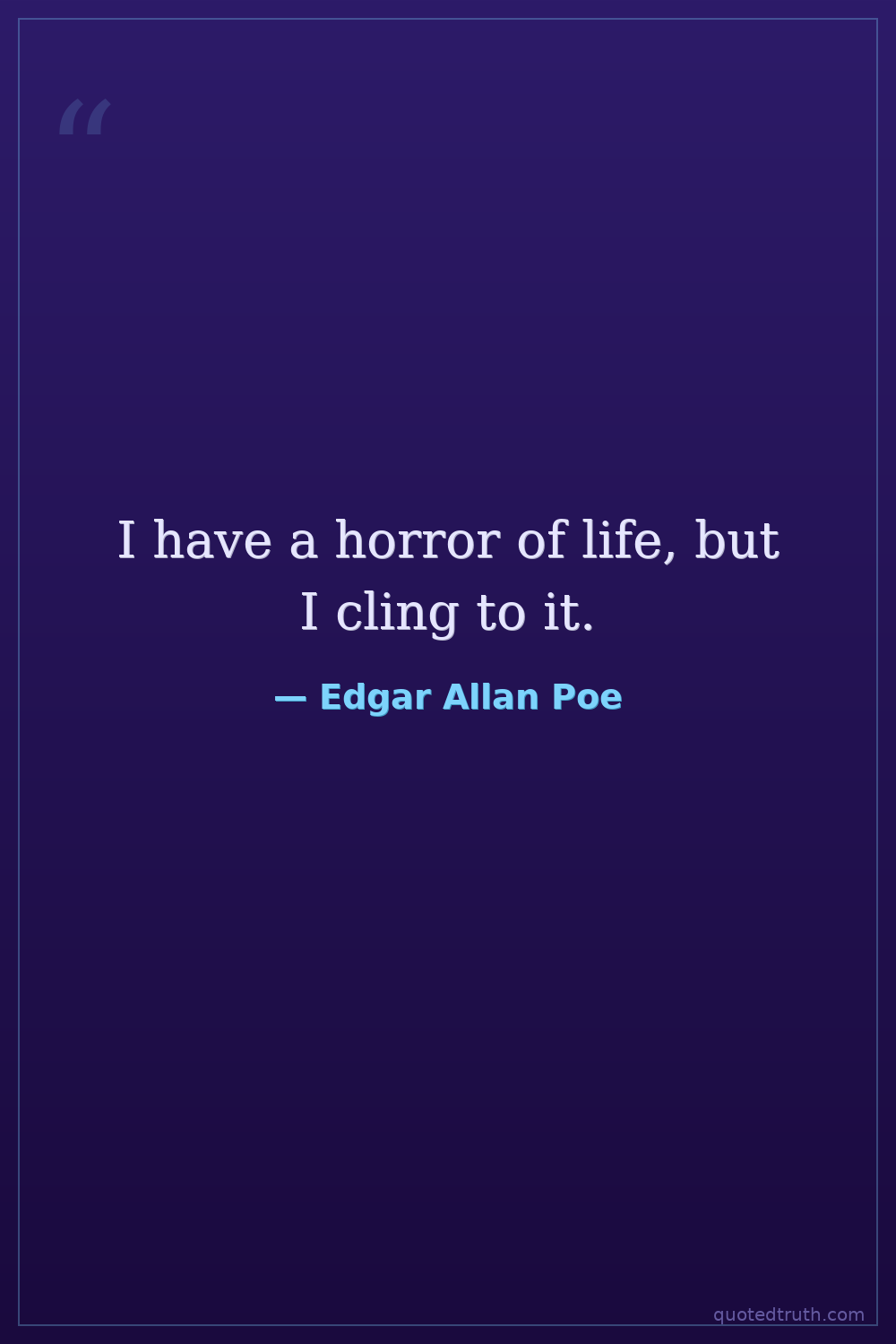 I have a horror of life, but I cling to it.
