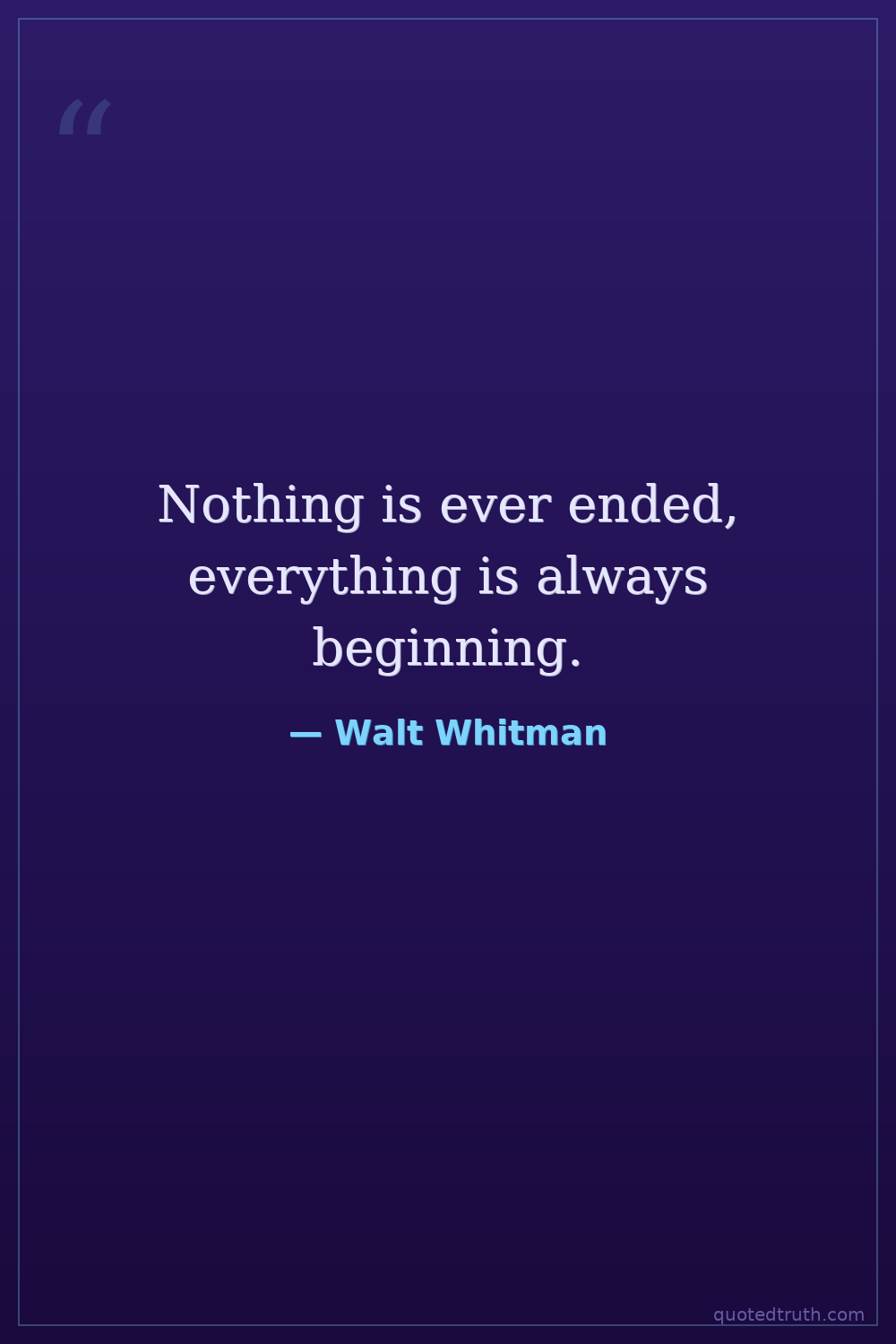 Nothing is ever ended, everything is always beginning.