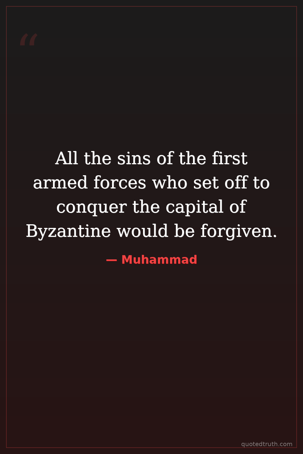 All the sins of the first armed forces who set off to conquer the capital of Byzantine would be forgiven.