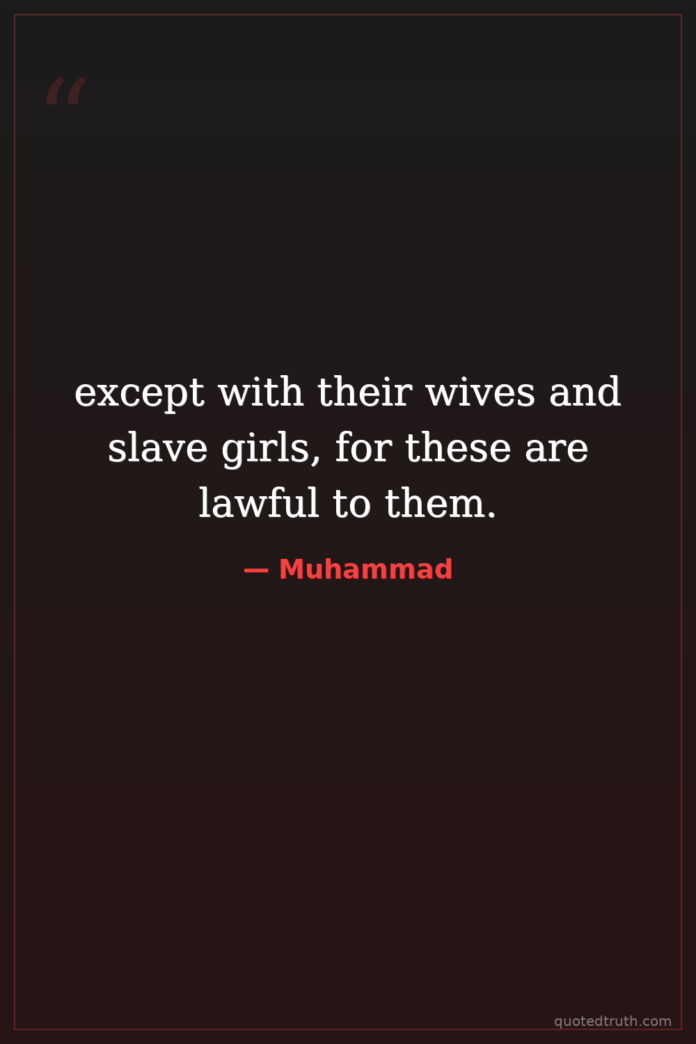 except with their wives and slave girls, for these are lawful to them.