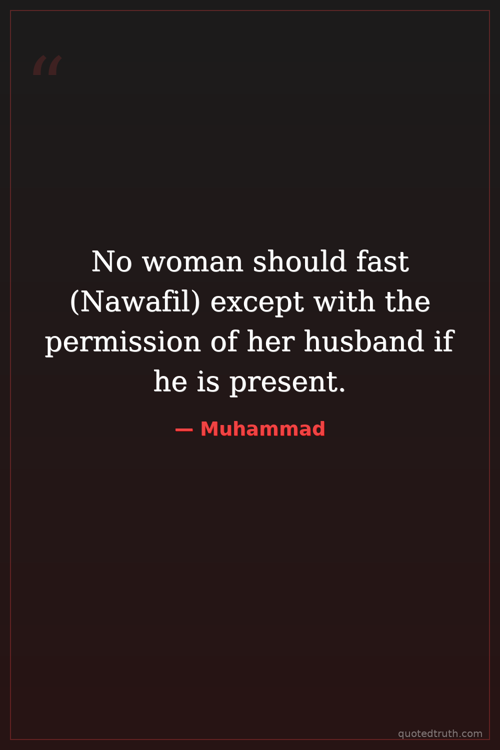 No woman should fast (Nawafil) except with the permission of her husband if he is present.