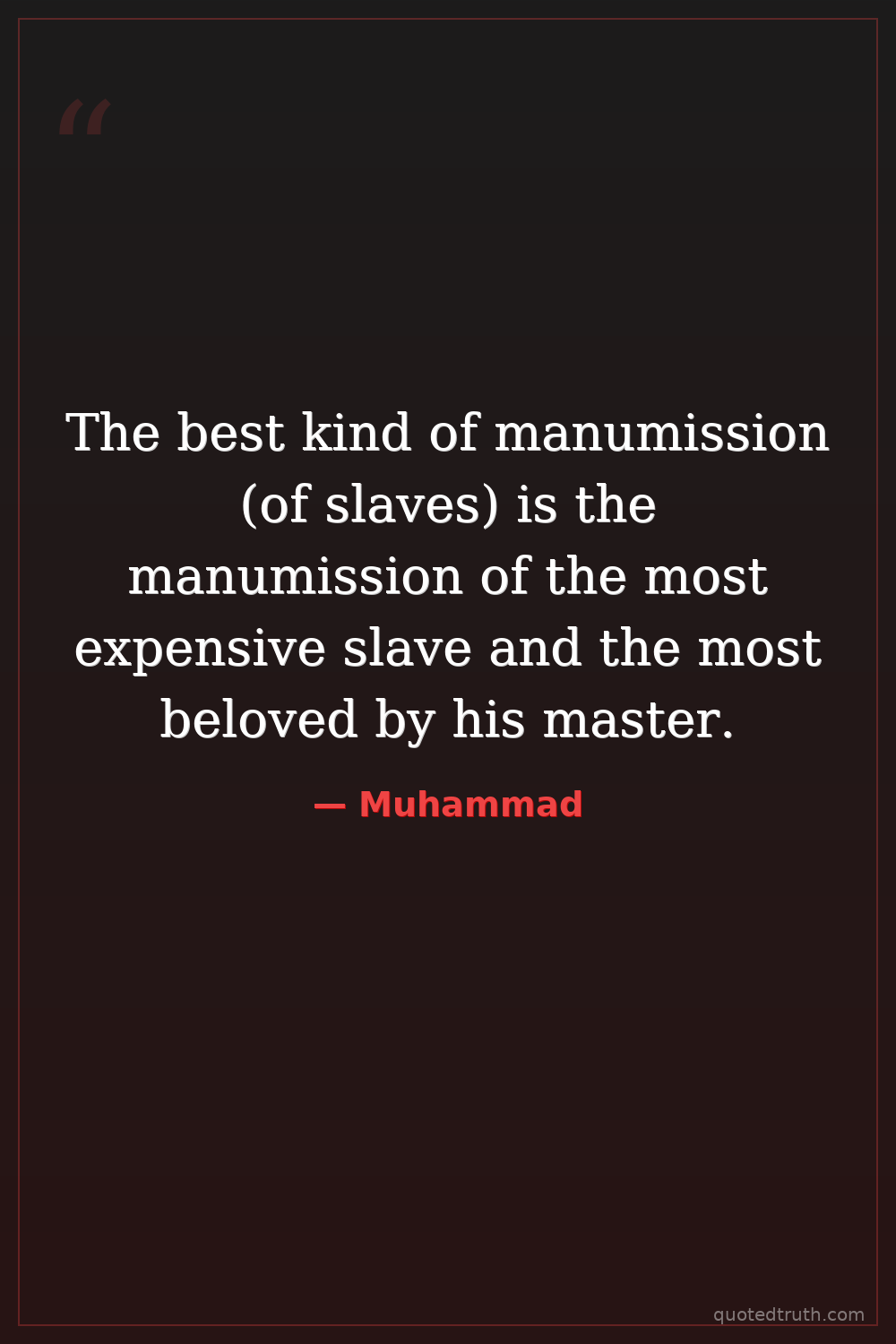The best kind of manumission (of slaves) is the manumission of the most expensive slave and the most beloved by his master.
