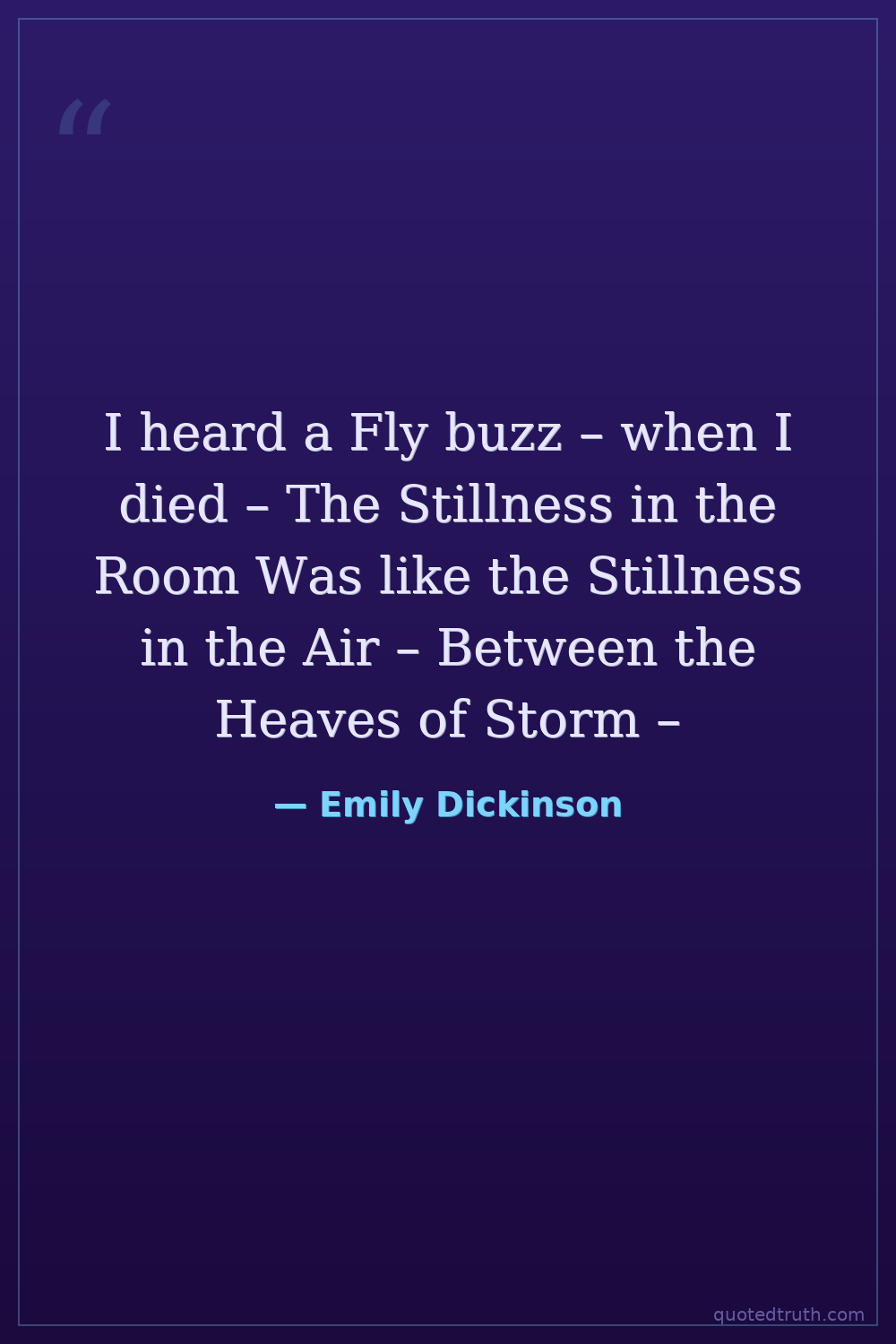 I heard a Fly buzz – when I died – The Stillness in the Room Was like the Stillness in the Air – Between the Heaves of Storm –