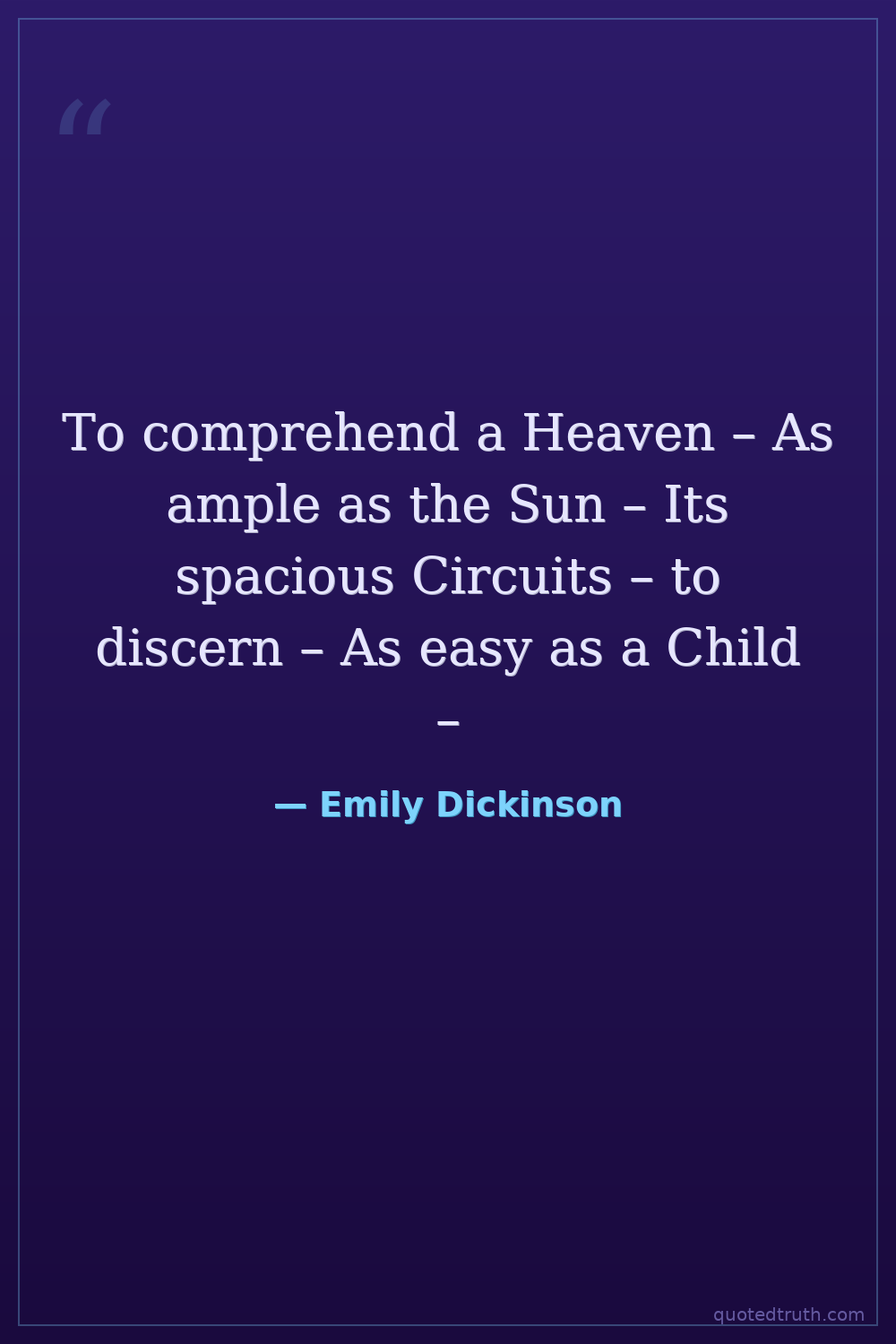 To comprehend a Heaven – As ample as the Sun – Its spacious Circuits – to discern – As easy as a Child –