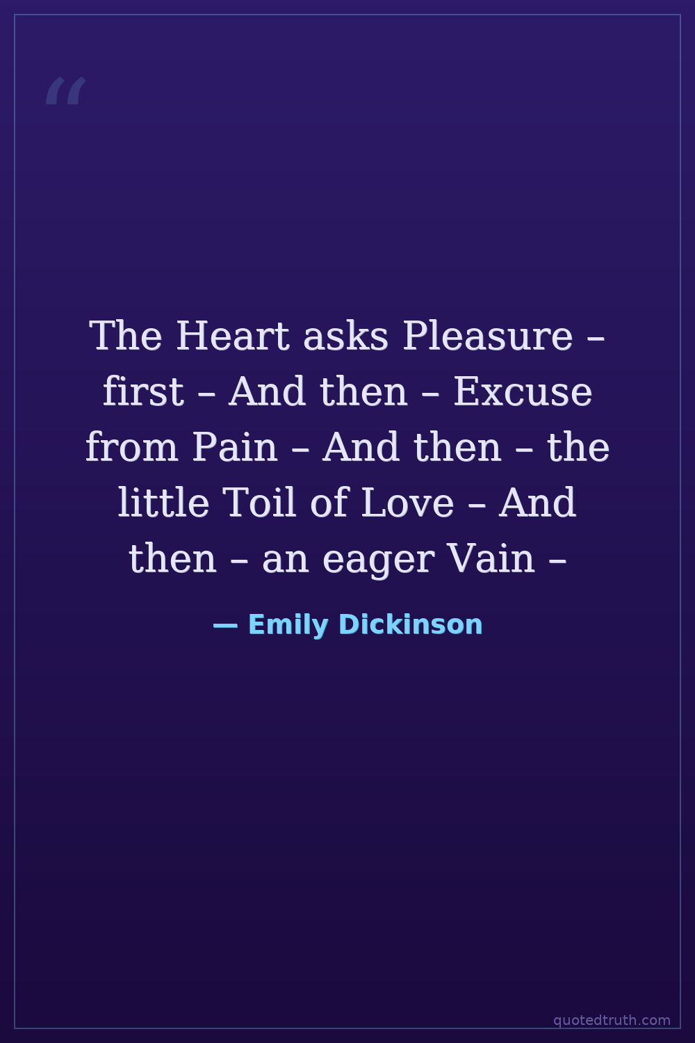 The Heart asks Pleasure – first – And then – Excuse from Pain – And then – the little Toil of Love – And then – an eager Vain –