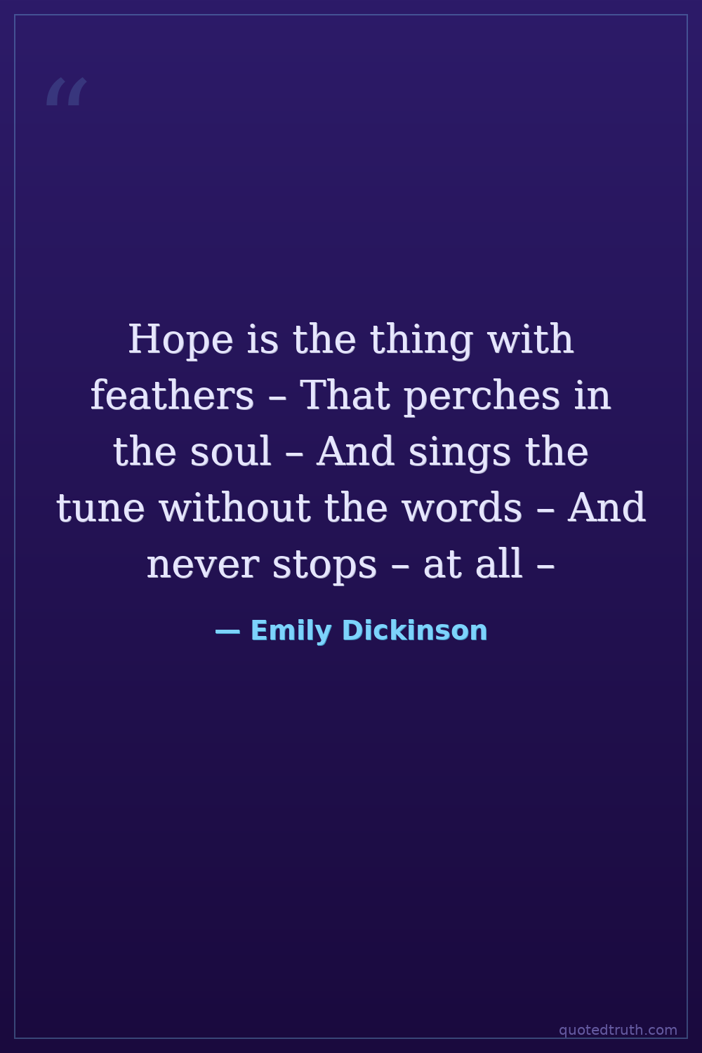Hope is the thing with feathers – That perches in the soul – And sings the tune without the words – And never stops – at all –