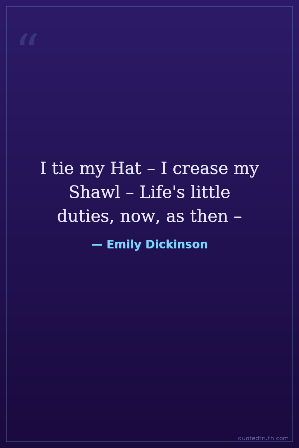 I tie my Hat – I crease my Shawl – Life's little duties, now, as then –