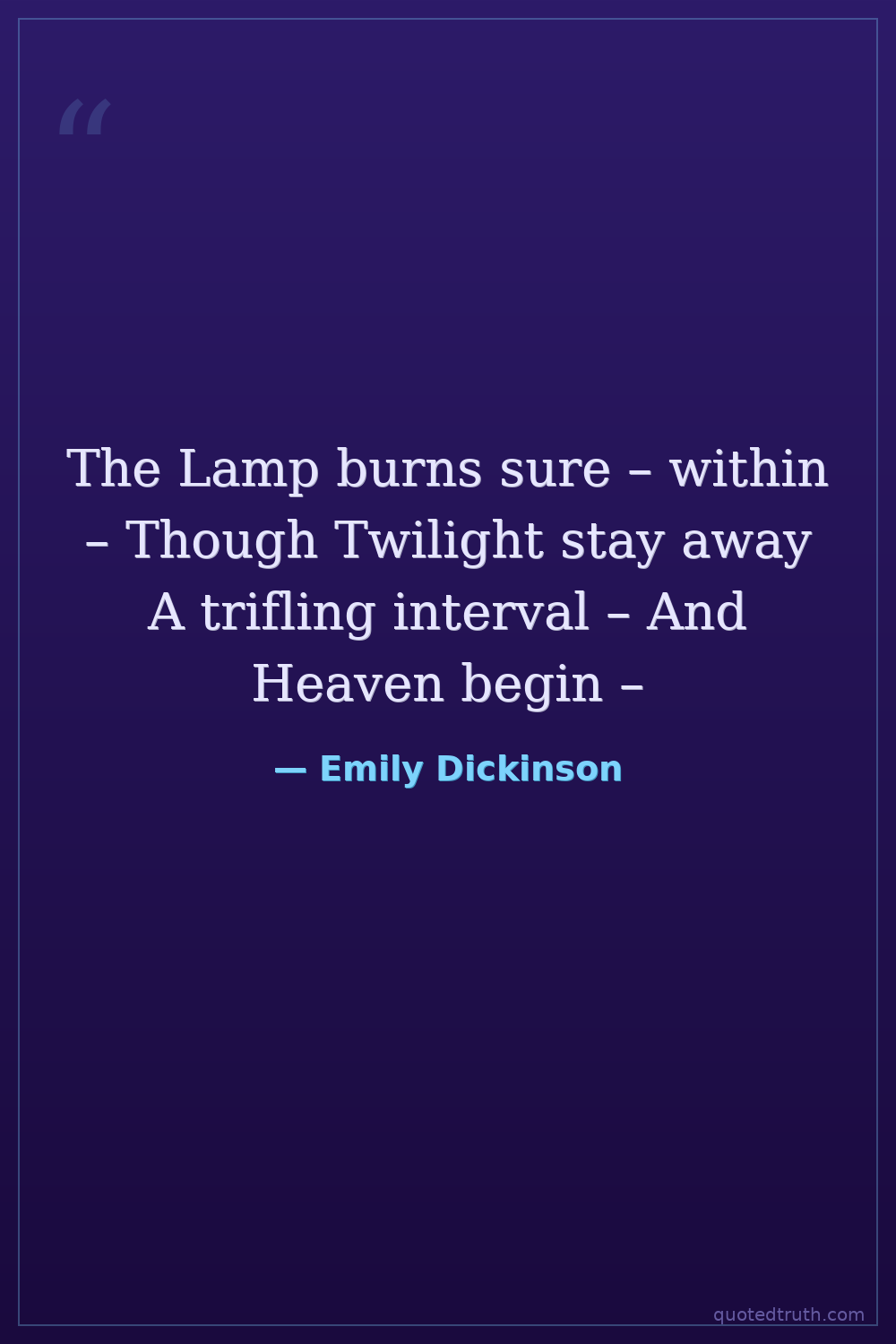 The Lamp burns sure – within – Though Twilight stay away A trifling interval – And Heaven begin –