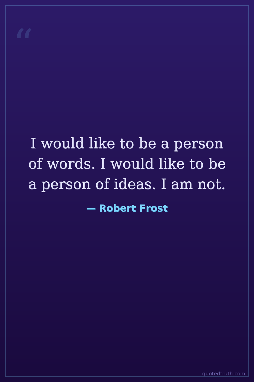 I would like to be a person of words. I would like to be a person of ideas. I am not.