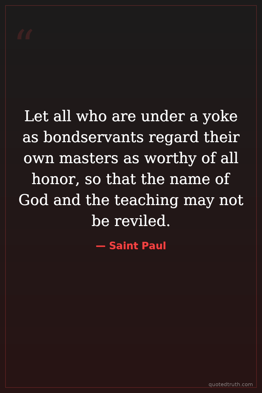 Let all who are under a yoke as bondservants regard their own masters as worthy of all honor, so that the name of God and the teaching may not be reviled.
