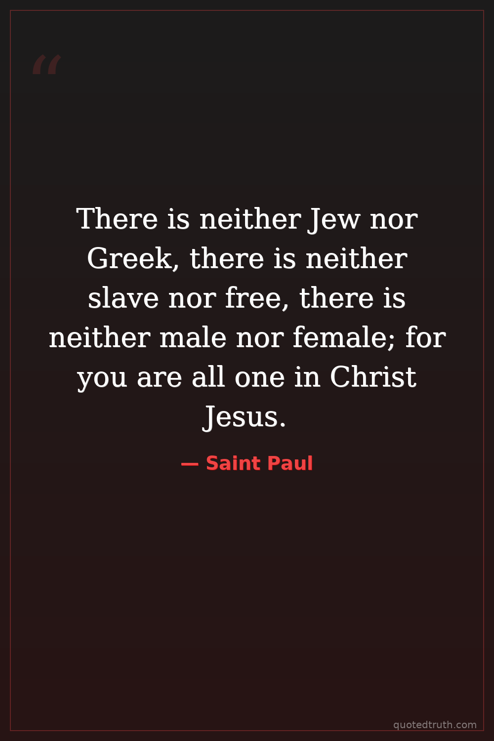 There is neither Jew nor Greek, there is neither slave nor free, there is neither male nor female; for you are all one in Christ Jesus.