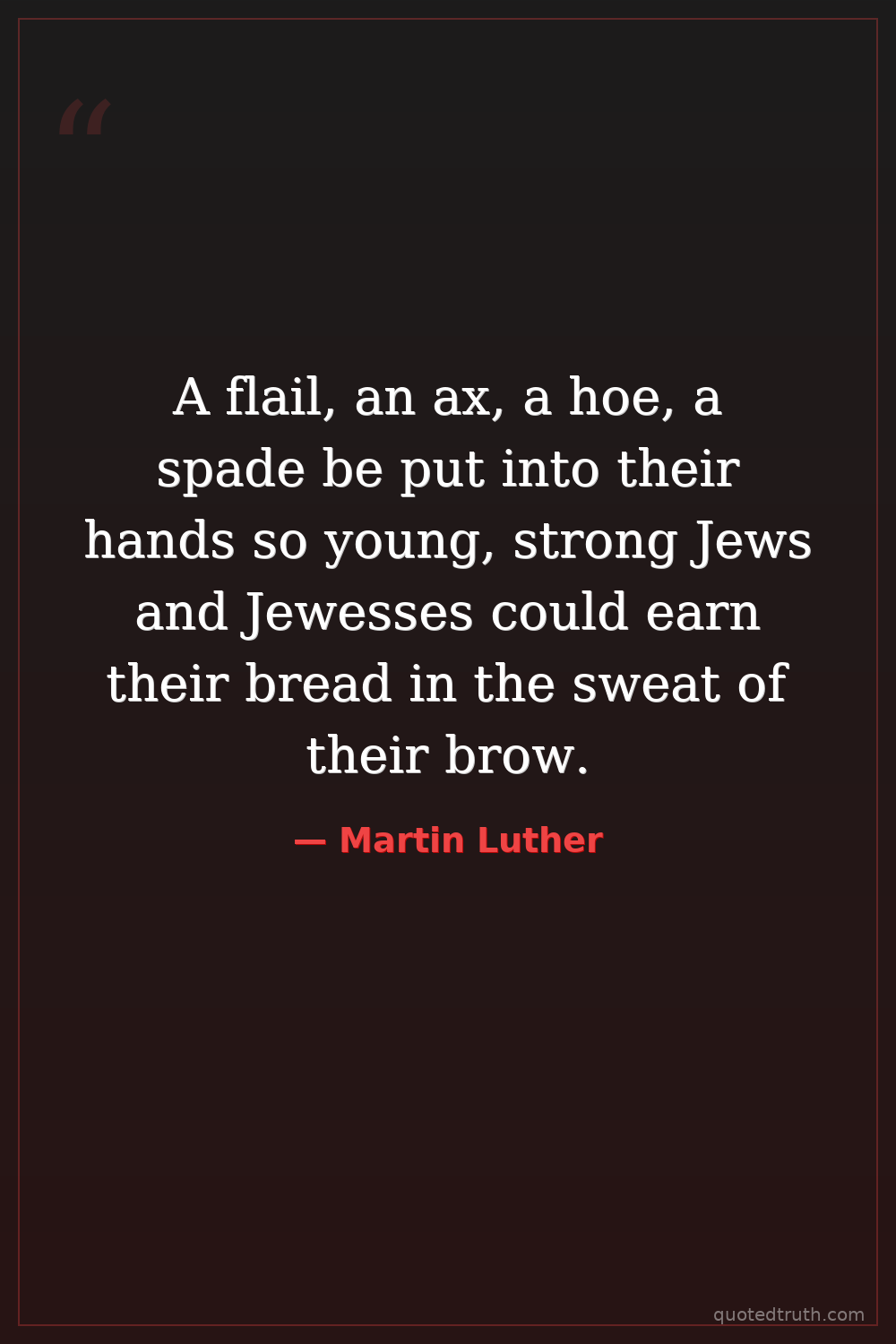 A flail, an ax, a hoe, a spade be put into their hands so young, strong Jews and Jewesses could earn their bread in the sweat of their brow.