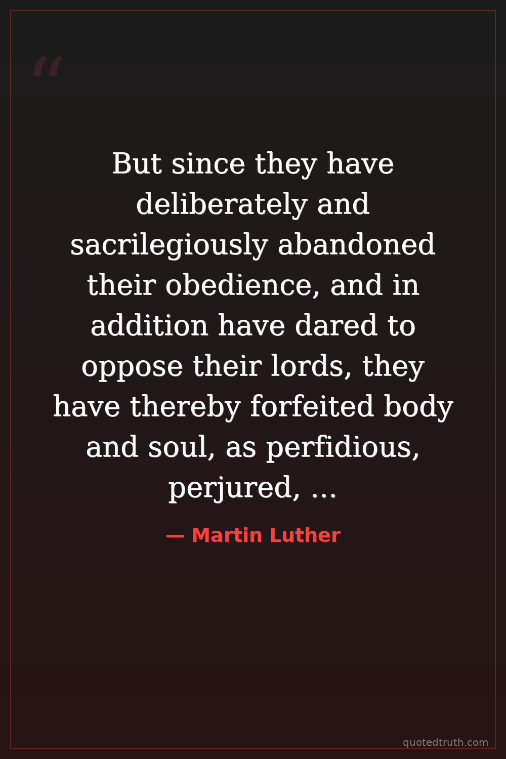 But since they have deliberately and sacrilegiously abandoned their obedience, and in addition have dared to oppose their lords, they have thereby forfeited body and soul, as perfidious, perjured, lying, disobedient wretches and scoundrels are wont to do.