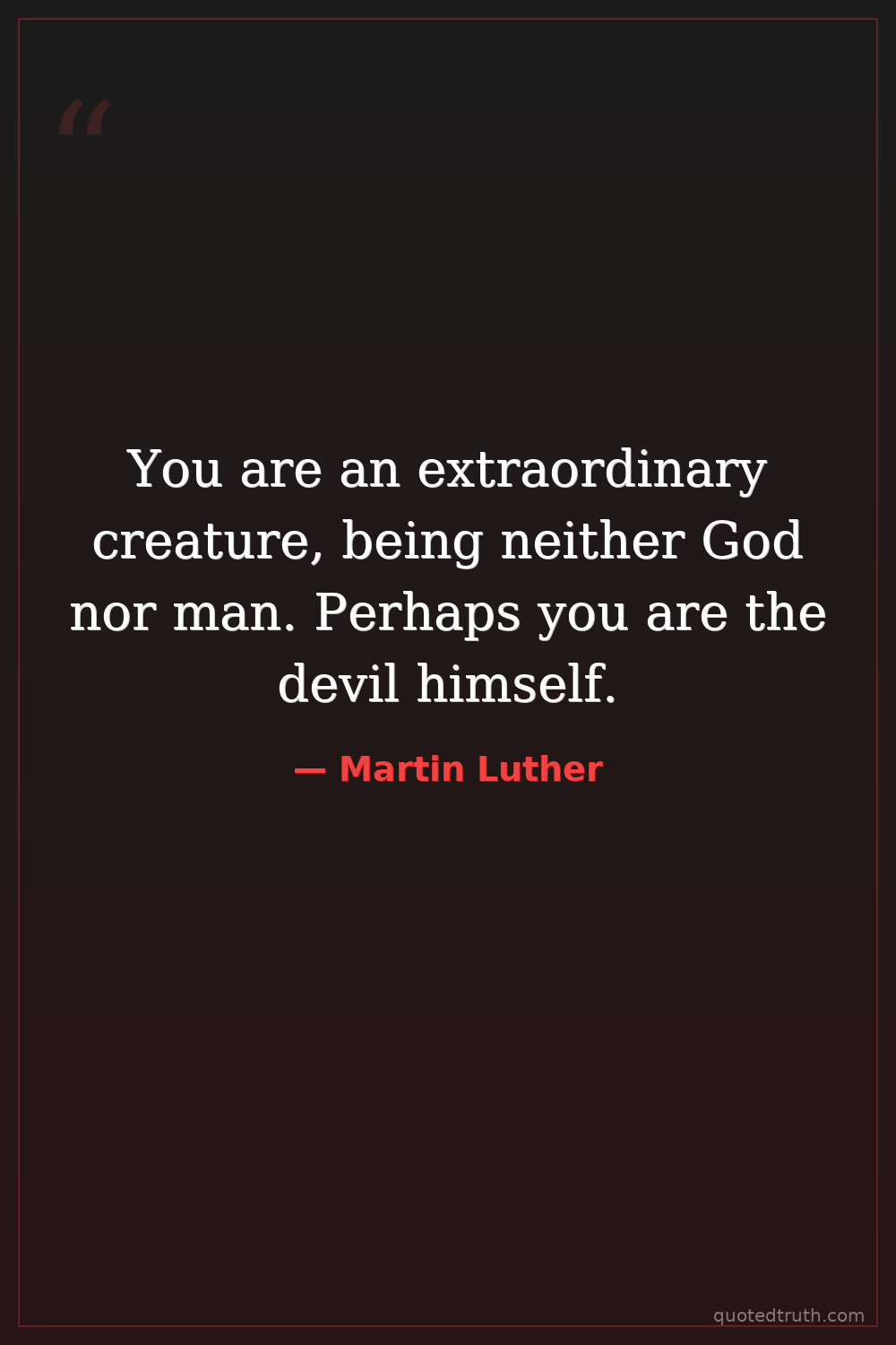 You are an extraordinary creature, being neither God nor man. Perhaps you are the devil himself.