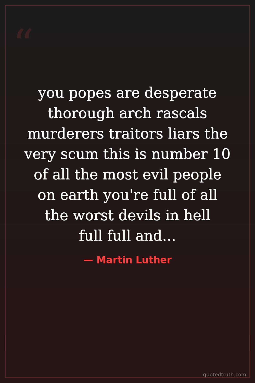 you popes are desperate thorough arch rascals murderers traitors liars the very scum this is number 10 of all the most evil people on earth you're full of all the worst devils in hell full full and so full that you can do nothing but vomit throw and blow out devils.