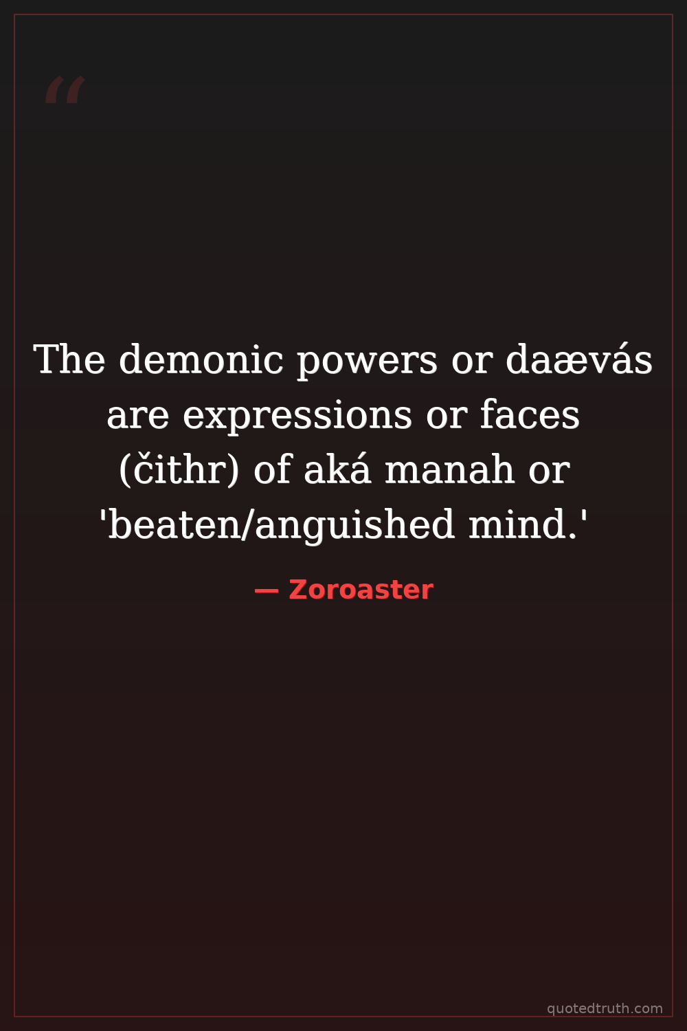 The demonic powers or daævás are expressions or faces (čithr) of aká manah or 'beaten/anguished mind.'