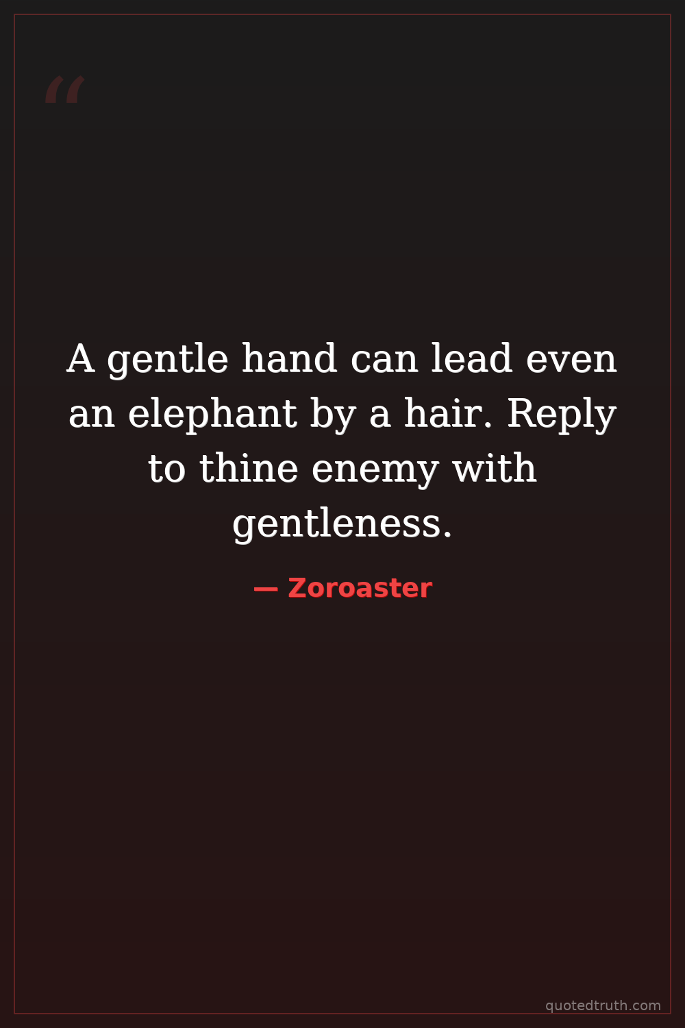 A gentle hand can lead even an elephant by a hair. Reply to thine enemy with gentleness.