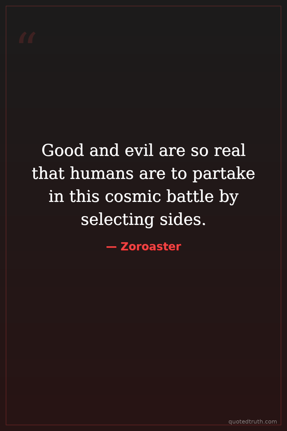 Good and evil are so real that humans are to partake in this cosmic battle by selecting sides.
