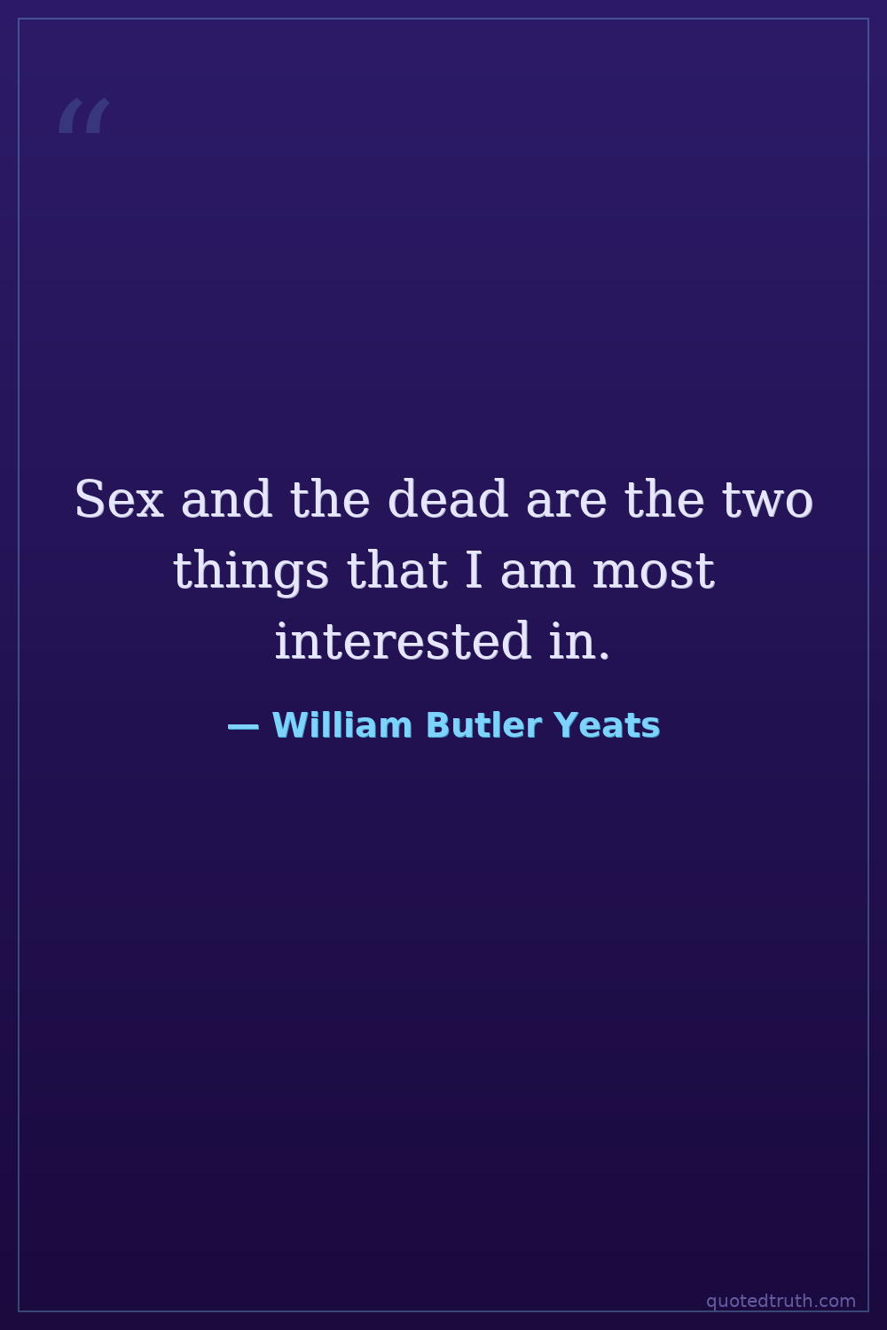 Sex and the dead are the two things that I am most interested in.