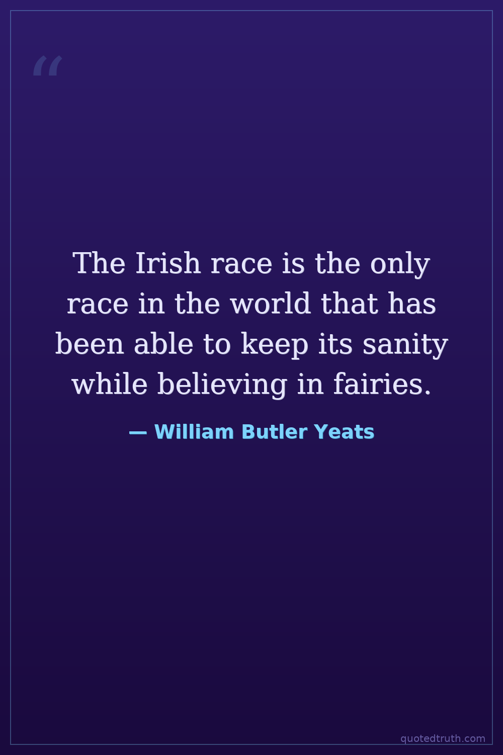 The Irish race is the only race in the world that has been able to keep its sanity while believing in fairies.