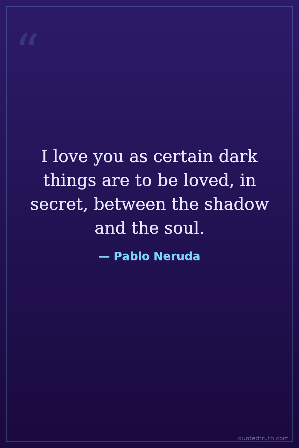 I love you as certain dark things are to be loved, in secret, between the shadow and the soul.