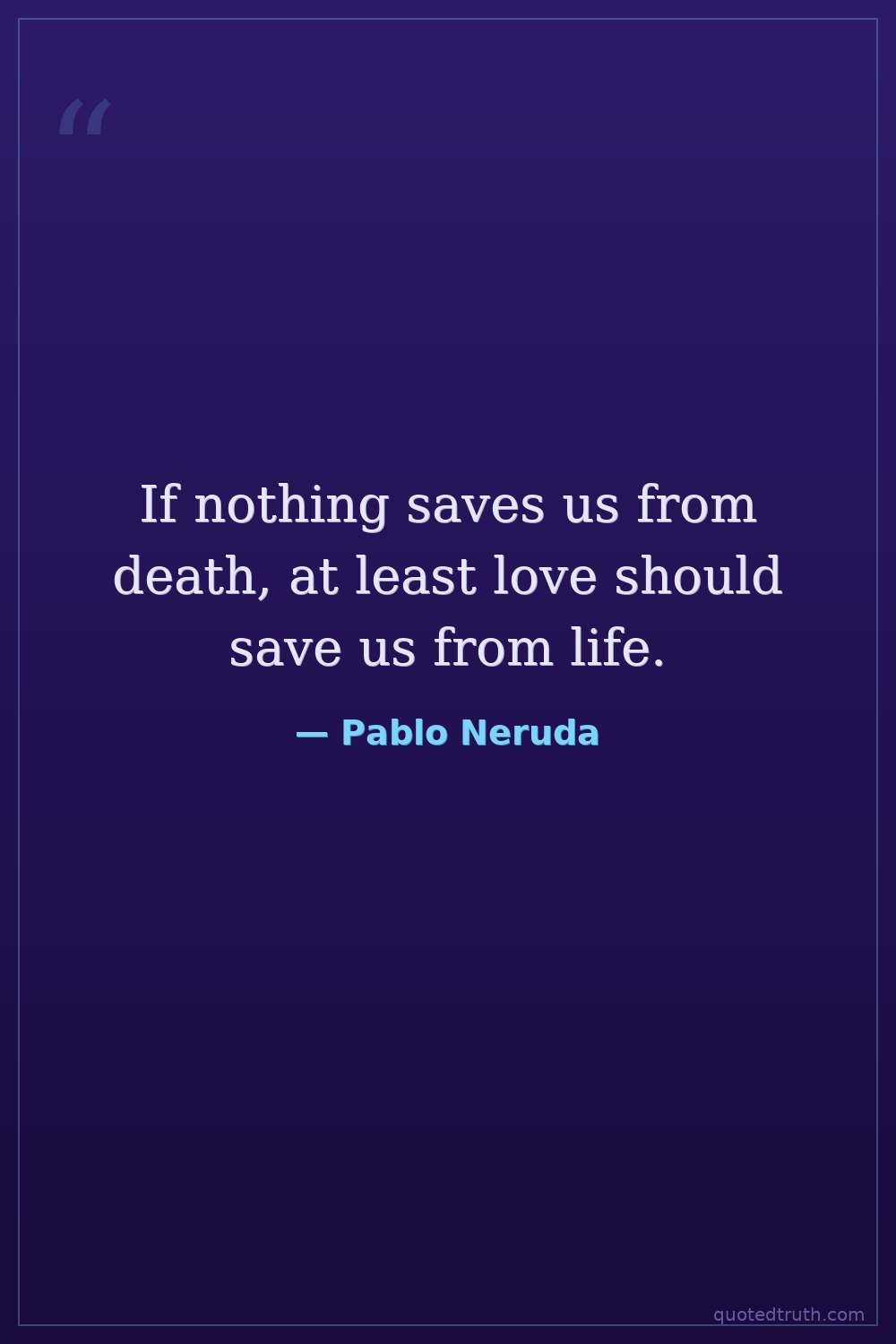 If nothing saves us from death, at least love should save us from life.