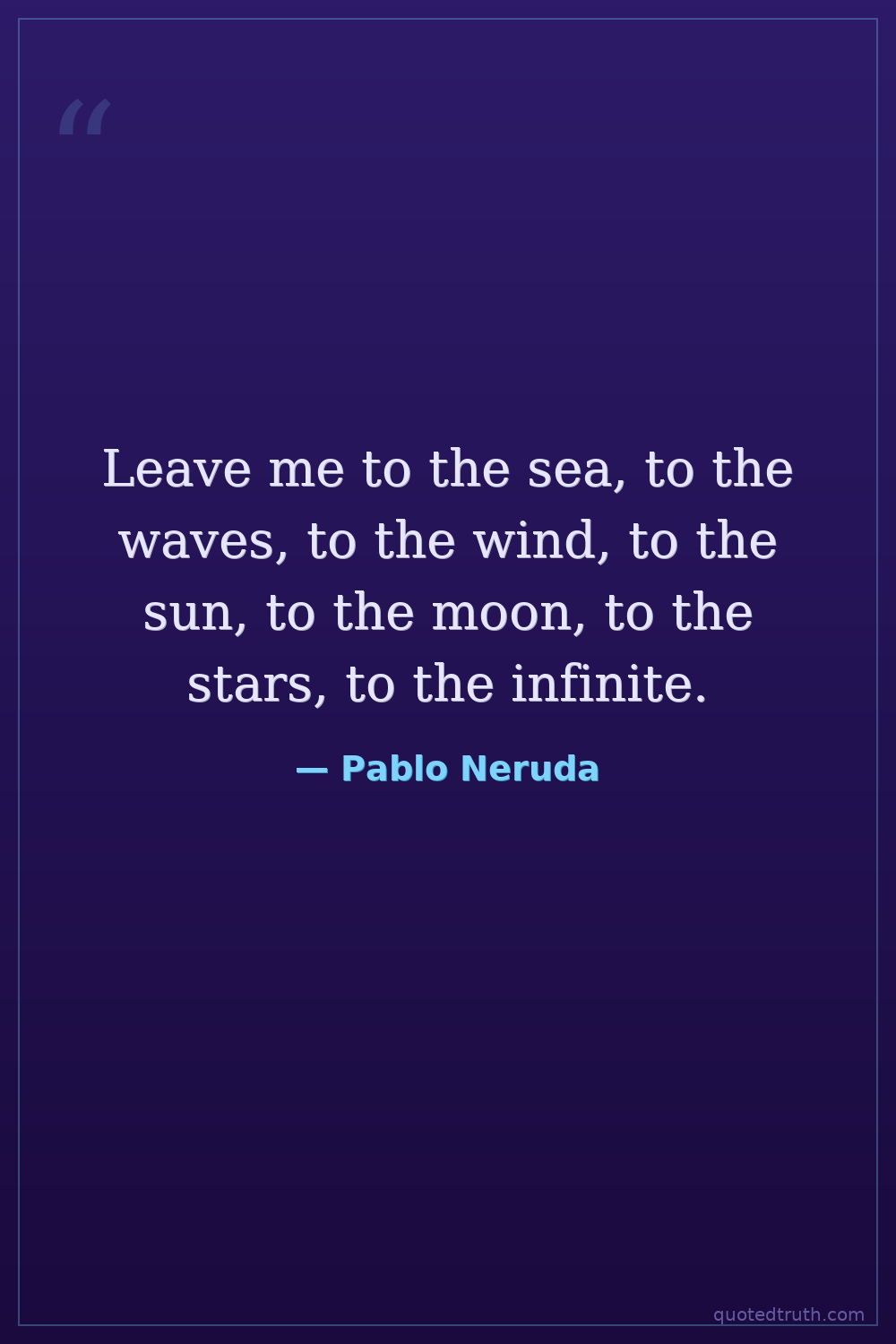 Leave me to the sea, to the waves, to the wind, to the sun, to the moon, to the stars, to the infinite.