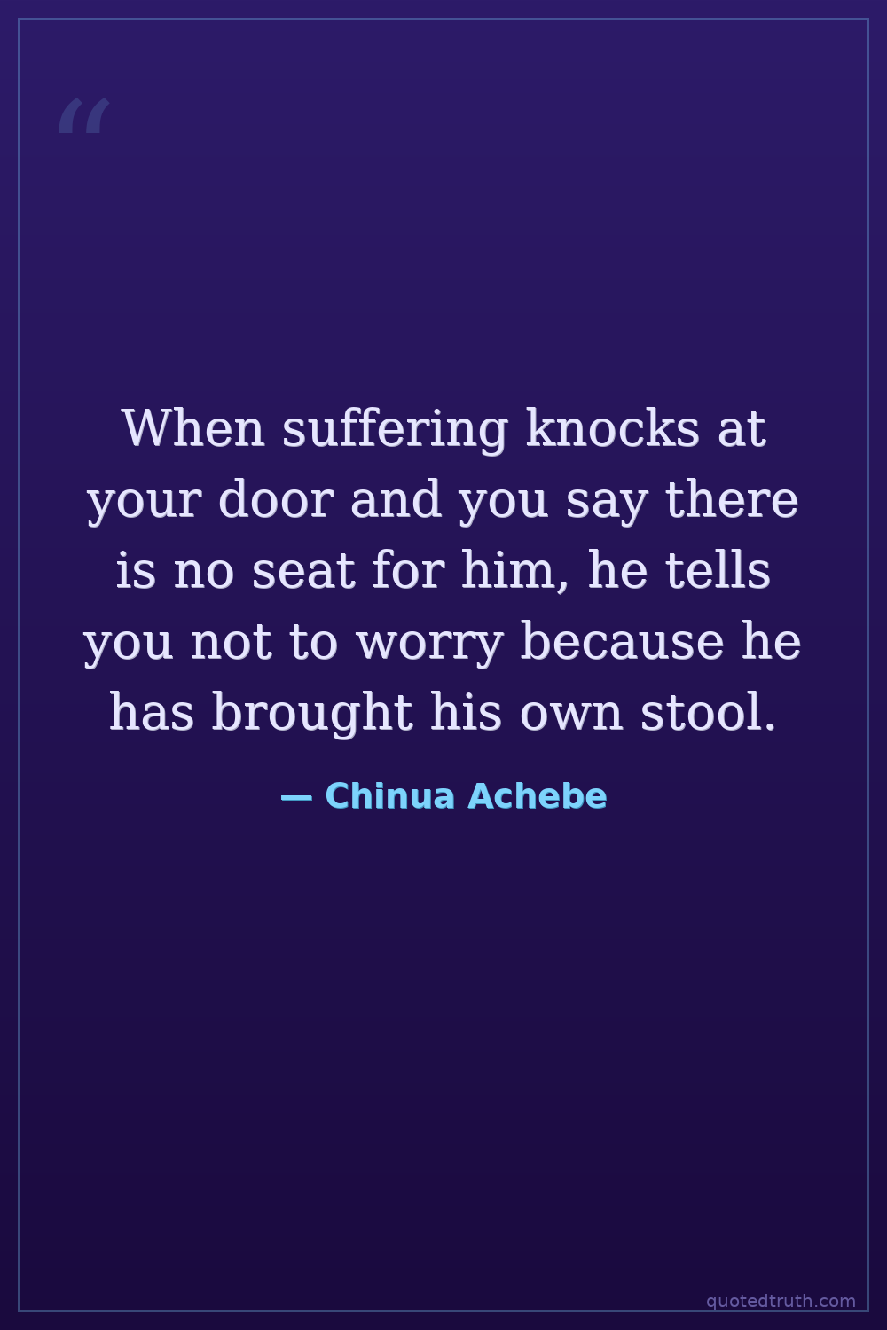 When suffering knocks at your door and you say there is no seat for him, he tells you not to worry because he has brought his own stool.
